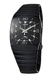 Rado Men's RADO-R13477172 Sinatra Chronograph WatchBlack ceramic case with a black ceramic bracelet. Fixed black ceramic bezel. Black dial with luminous hands and index hour markers. Minute markers around the outer rim. Luminescent hands and markers. Chronograph - three sub-dials displaying: 1/10th seconds, 30 minutes and 60 seconds. Quartz movement. Scratch resistant sapphire crystal. Solid case back. Case dimensions: 34 mm x 30 mm. Push button folding clasp. Water resistant at 30 meters/ 100 feet. Functions: hours, minutes, seconds, chronograph. Rado Sintra Chronograph Men's Watch R13477172.
