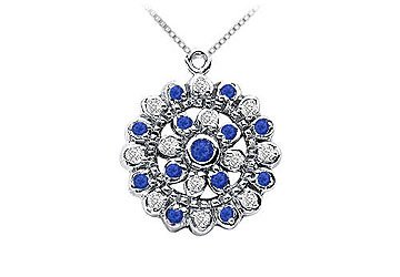 Sapphire and Diamond Flower Pendant : 14K White Gold - 0.50 CT TGW Sapphire and Diamond Flower Pend?In this gleaming 14K white gold is expertly crafted in delicate flowers with twenty-four brilliant-cut diamonds & sapphires set alternately all around it. Center sits a bezel-set round blue sapphire. This gorgeous pendant has a total gem weight (TGW) of 0.50 carat.