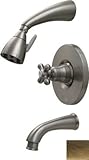 Whitehaus 614.865pr Wall Mount Shower Set with Valve Tub Filler & DiverPressure balance valve with shower head tub spout with pull down diverter and bell-shaped cross handle.