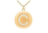 | ✚✚✚ Diamond Initial C Disc Pendant : 14K Yellow Gold - 0.25 CT Diamonds Diamond Initial C Disc Pendant Perfectly made in polished 14K yellow gold this disc pendant is inscribed with the letter C. This alphabet is embellished with 13 brilliant-cut round diamonds with a total diamond weight (TDW) of 0.25 ct. Wear your identity symbol.