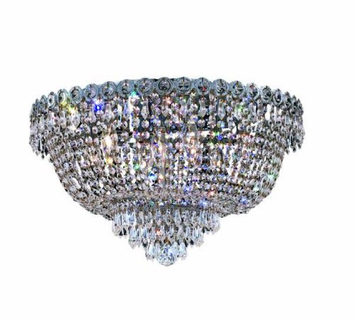 Elegant Lighting 1900F20C/RC Century 12-Inch High 9-Light Flush Mount, Chrome Finish with Crystal (Clear) Royal Cut RC Crystal?1900F20C/RC Finish: Chrome, Crystal Trim: Royal Cut Features: -Flush mount.-Available in Royal Cut, Elegant Cut, Spectra Swarovski and Strass Swarovski crystal trims. Options: -Available in Gold and Chrome finishes. Color/Finish: -Crystal color: Clear. Specifications: -Accommodates: 9 x 60-540W Max 110V-125V (Candelabra) bulb. Dimensions: -Hanging weight: 13.-Dimensions: 12'' H x 20'' W. Collection: -Century collection.