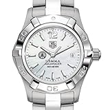 US Merchant Marine Academy TAG Heuer Watch - Women's Steel Aquaracer WatchMerchant Marine Academy TAG Heuer women's Aquaracer watch with USMMA seal in black; "USMMA" is written underneath. White mother of pearl dial with polished markers. Brushed and Polished steel bracelet with double security clasp. Case stamped from a solid block of stainless steel (27 mm diameter.) Unidirectional rotating bezel. Luminescent hands and markers for optimum readability and radiance. Screw-in crown and caseback for water resistance to 300 meters. Swiss-made Quartz movement. Scratch-resistant sapphire crystal. Unique TAG Heuer presentation box. TAG Heuer international two-year warranty.